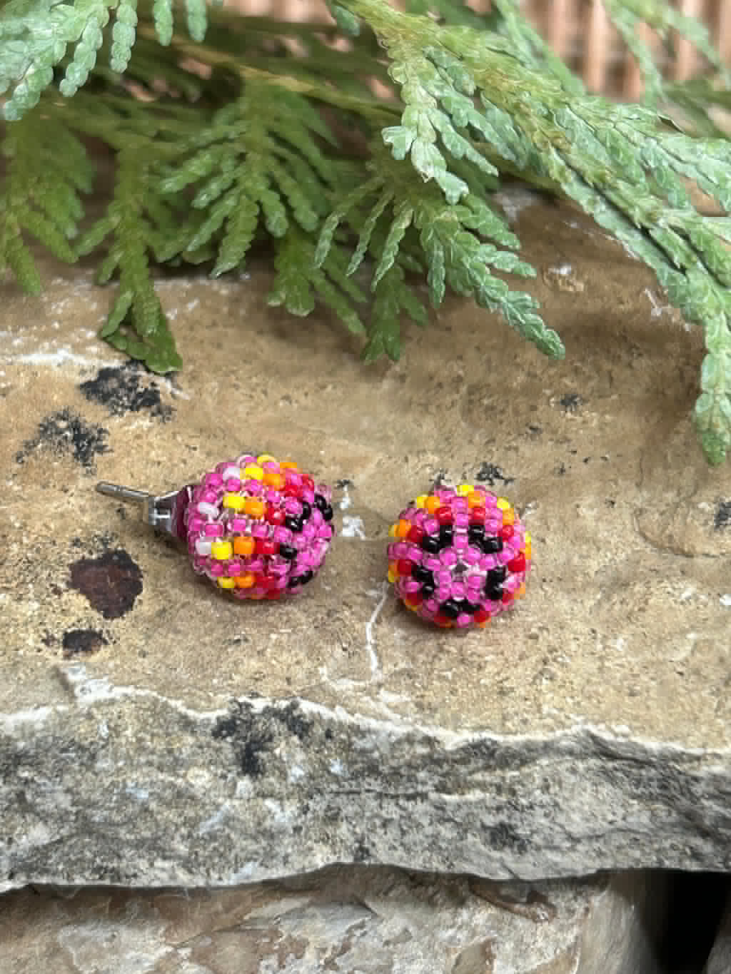 Round Beaded Stud Earrings