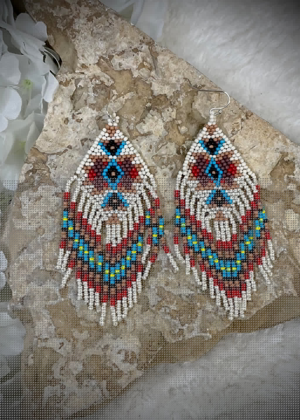 Diamond Beige Beaded Fringe Earrings
